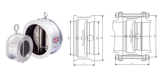 对夹式止回阀由阀体、阀瓣、阀杆及弹簧等零件组成,采用对夹连接。由于阀瓣的关闭行程短,并且有弹簧加载,可显著减少水锤现象。该阀主要适用于城市、工业及高层建筑给水、排水管网上。由于其结构长度比一般止回阀短,对有安装空间限制的场所为适用。